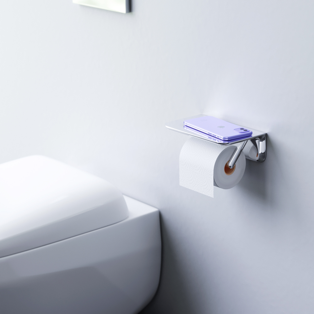 Двойная функциональность: держатель оснащен удобной полочкой которую можно использовать в качестве места хранения.
