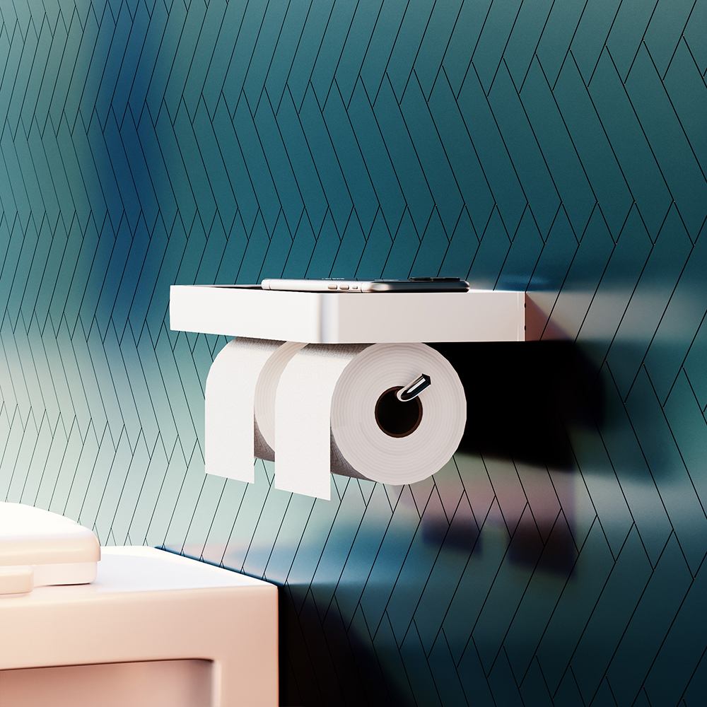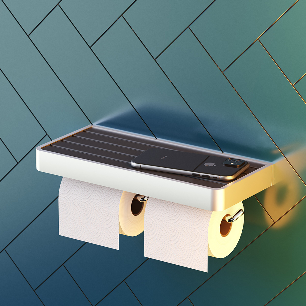 Объемная черная алюминиевая полка позволяет с комфортом расположить телефон и специальные ароматические средства для вашей уборной. Широкий профиль из алюминия позволяет тратить намного меньше времени на уборку