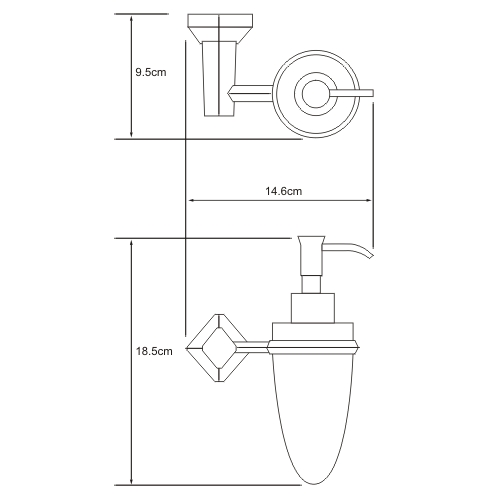 Материал: металл, хромоникелевое покрытие, уплотнительные пластиковые кольца, матовое стекло