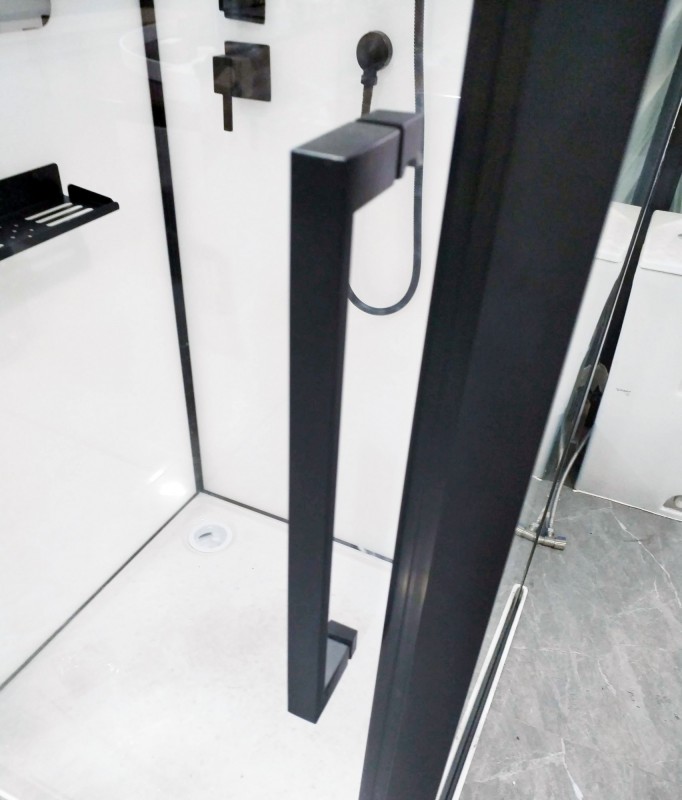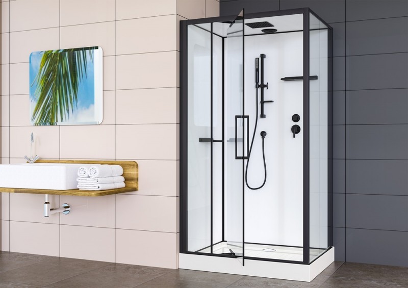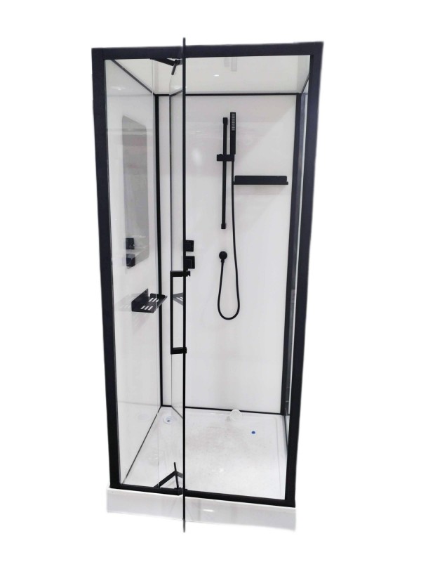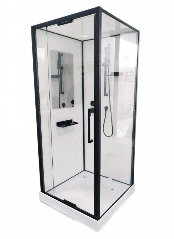 Душевая кабина квадратной (или прямоугольной) формы, с конструкцией для быстрой сборки