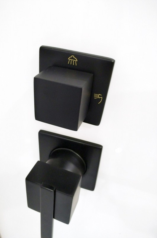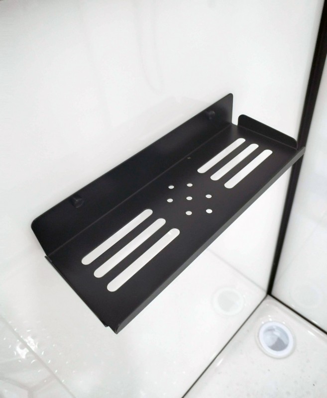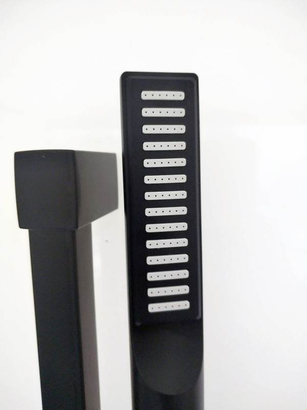 2-х режимный смеситель, ручная лейка из ABS (черного цвета) на штанге, полочка из нержавеющей стали 1 шт., шланг из ПВХ длиной 1,5 м;