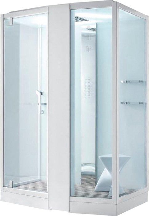 Комплектация: Турецкая баня, гидромассаж, полочки, хромированный полотенцедержатель, FM радио, вентиляция, сиденье, верхний душ, озонация, ручной душ с подмесом воздуха, поддон из тика, отдельностоящее акриловое сиденье.