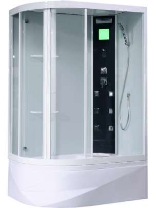 Верхний и ручной душ с LED подсветкой, каскадный излив ""Водопад"", латунный смеситель, 6 форсунок гидромассажа, вентиляция, FM радио, сифон