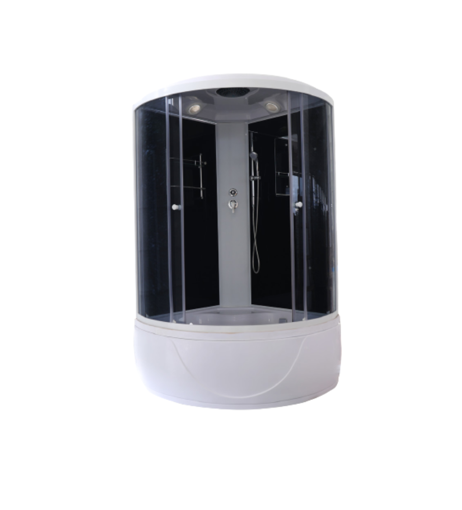 Просторная кабина – отличный выбор для семей с детьми. Высокий поддон можно использоваться в качестве ванночки для замачивания вещей и купания детей, животных. Стенки и двери из закаленного стекла, поэтому в случае битья полотно рассыпается на куски с тупыми гранями, о которые невозможно порезаться. Достоинства: Стекло: тонированное закаленное, 4 мм. Стенки: закаленное стекло чёрное, 4 мм. Профиль: белый, алюминиевый. Поддон: высокий, полукруглый. Есть литое сиденье, которое можно использовать как дополнительное место для хранения. Съемный экран позволяет оперативно подобраться к коммуникациям. В центральную панель возможна установка пульта. Раздвижные двери плотно смыкаются за счет магнитной ленты, вода сквозь стыки не просачивается. Комплектация: полка, верхний душ ТРОПИК, ручной душ, сифон, зеркало, налив воды в поддон.