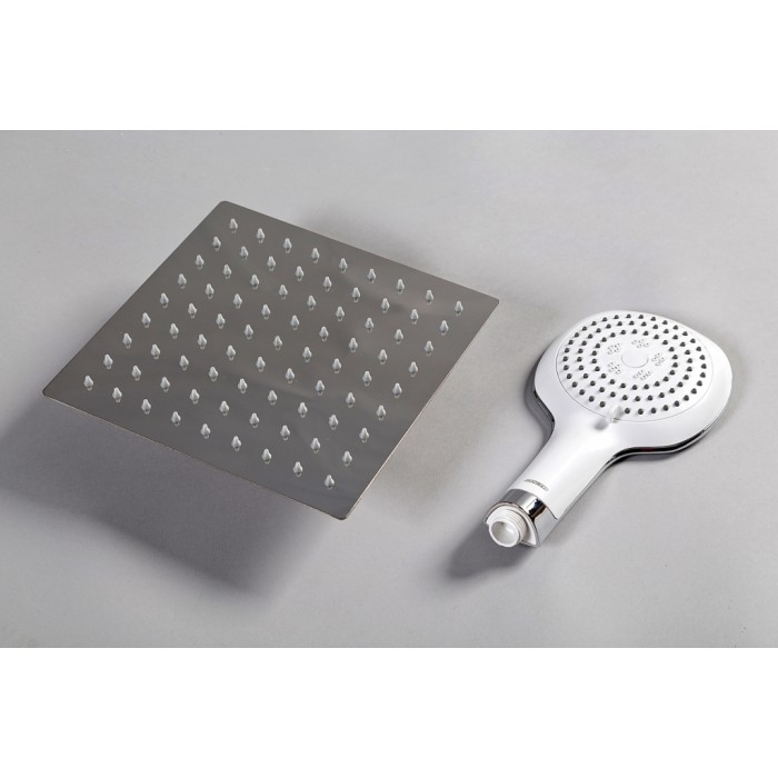 Широкий верхний душ с самоочищающимися резиновыми джетами;