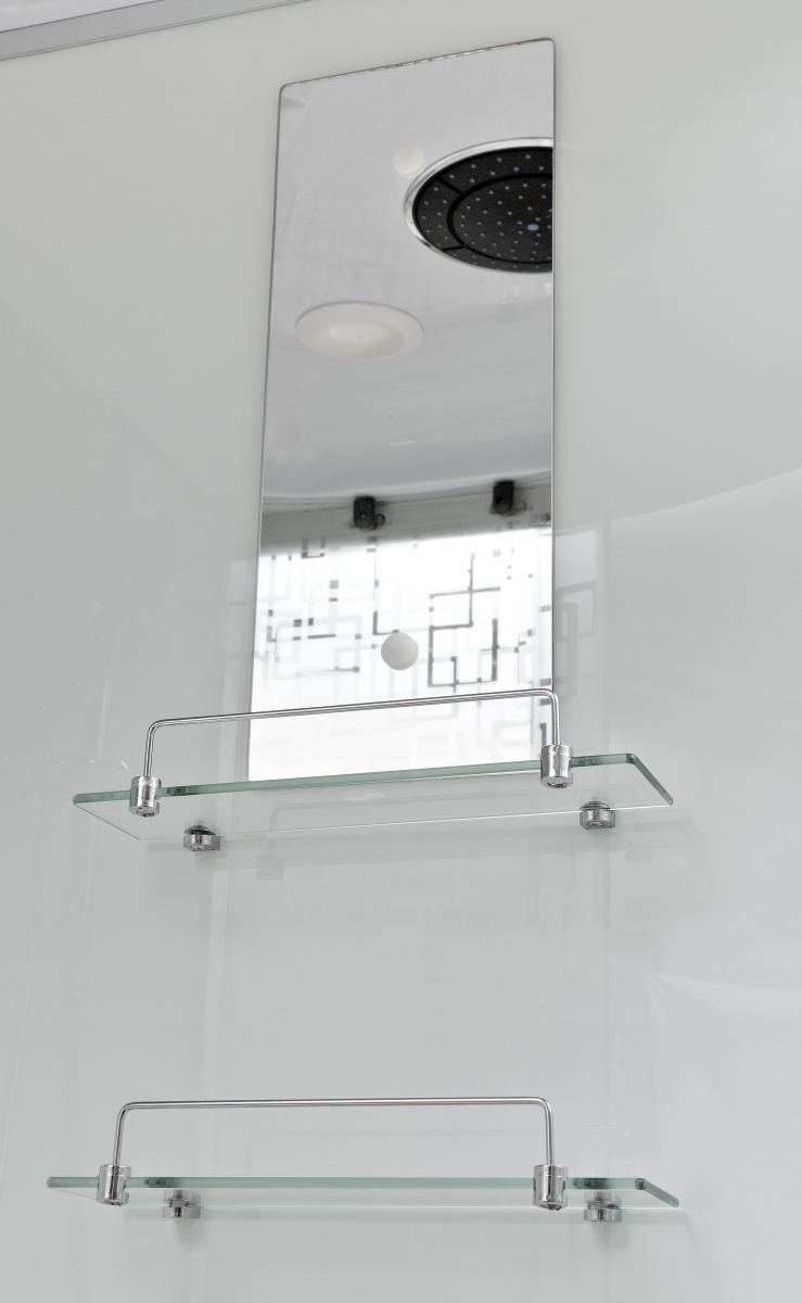 Закаленные, ударопрочные стекла 5 мм с уникальным матовым рисунком, спереди;