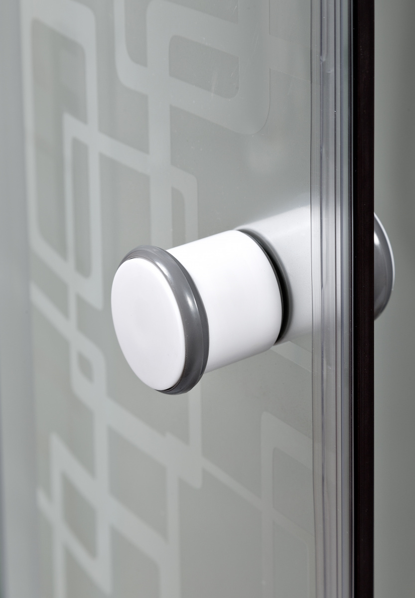 Закаленные, ударопрочные стекла 5 мм с уникальным матовым рисунком, спереди;
