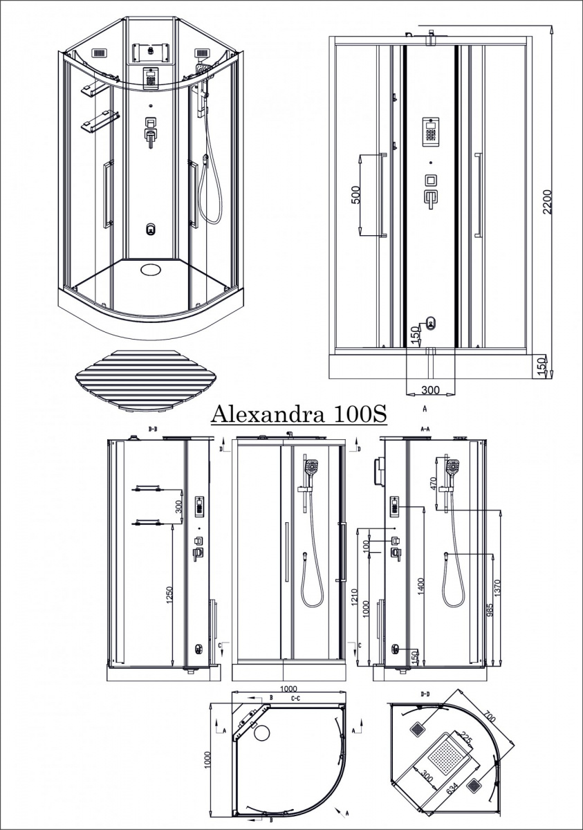 Размер: 100 х 100 х 220 см.
