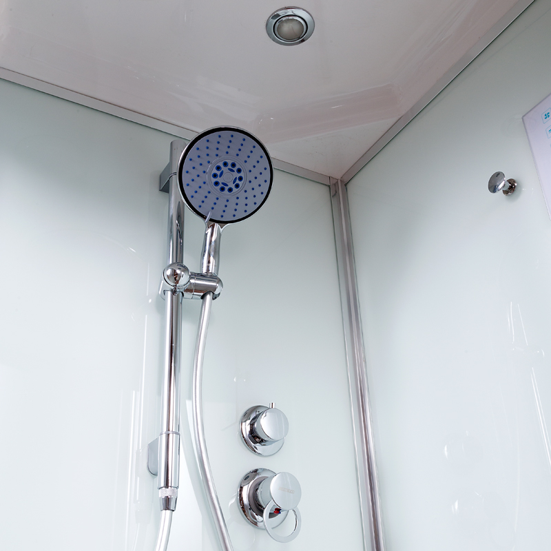 Стильная душевая кабина AvaCan D10S с электрикой сочетает в себе высокую функциональность, практичность и надежность. Для изготовления применяют безопасное закаленное стекло толщиной 4 мм, надежно фиксируемое алюминиевым профилем. Цвет профиля хром. В комплекте встроенное сидение, сифон, полочка, сенсорный пульт управления, смеситель, переключатель режимов, передний съемный экран, душевой гарнитур, тропический (верхний) душ, вентиляция, радио.