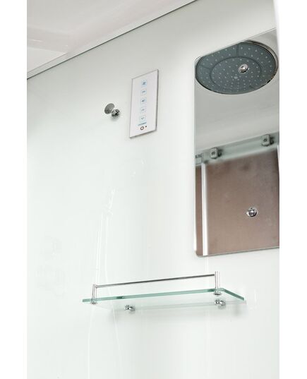 Стильная душевая кабина AvaCan D271S с электрикой сочетает в себе высокую функциональность, практичность и надежность. Для изготовления применяют безопасное закаленное стекло толщиной 4 мм, надежно фиксируемое алюминиевым профилем. Цвет профиля хром. В комплекте сифон, полочка, зеркало, сенсорный пульт управления, смеситель, переключатель режимов, душевой гарнитур,  тропический (верхний) душ, вентиляция, радио.