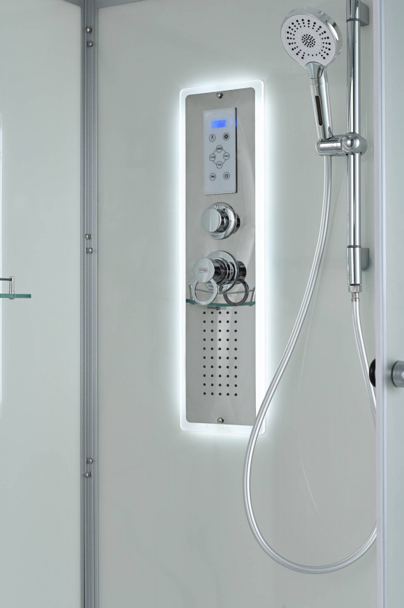 Стильная душевая кабина AvaCan D 3010 LED сочетает в себе высокую функциональность, практичность и надежность. При изготовлении применяется безопасное закаленное стекло толщиной 4 мм (матовое), надежно фиксируемое алюминиевым профилем. Сборка без силикона (увеличивает срок службы), внутренняя сборка(облегчает установку и ревизию; позволяет установить в ограниченном пространстве), смеситель резьбовой (без хомутов). Съемный экран поддона (позволяет осуществлять ревизию сифона). Цвет профиля матовый хром. Двойные металлические ролики дверей (увеличивают срок службы).В комплекте : душевая штанга, полочка, тропический (верхний) душ, арома-лейка с витамином С (картридж съемный), сенсорный пульт (блютуз, радио, LED подсветка в крыше и в центральной панели, вентелятор.)
