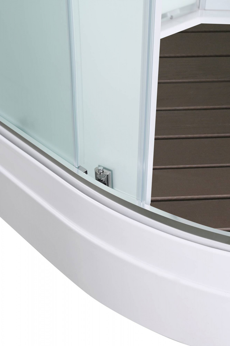 Стильная душевая кабина AvaCan EM2010 сочетает в себе высокую функциональность, практичность и надежность. При изготовлении применяется безопасное закаленное стекло толщиной 5 мм (матовое), надежно фиксируемое алюминиевым профилем. Сборка без силикона (увеличивает срок службы), внутренняя сборка(облегчает установку и ревизию; позволяет установить в ограниченном пространстве), смеситель резьбовой (без хомутов). Съемный экран поддона (позволяет осуществлять ревизию сифона). Цвет профиля  хром. Двойные металлические ролики дверей (увеличивают срок службы).В комплекте : душевая штанга, две полочки , тропический (верхний) душ, арома-лейка с витамином С (картридж съемный),полимерная вставка в поддон(имитация дерева),сифон, ручки дверей из нержавейки , двойные ролики .