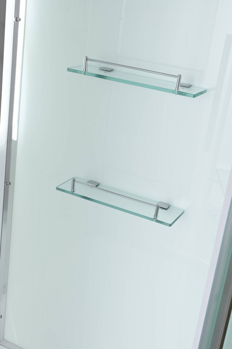 Стильная душевая кабина AvaCan EM2010LED сочетает в себе высокую функциональность, практичность и надежность. При изготовлении применяется безопасное закаленное стекло толщиной 5 мм (матовое), надежно фиксируемое алюминиевым профилем. Сборка без силикона (увеличивает срок службы), внутренняя сборка(облегчает установку и ревизию; позволяет установить в ограниченном пространстве), смеситель резьбовой (без хомутов). Съемный экран поддона (позволяет осуществлять ревизию сифона). Цвет профиля  хром. Двойные металлические ролики дверей (увеличивают срок службы).В комплекте : душевая штанга, две полочки , тропический (верхний) душ, арома-лейка с витамином С (картридж съемный),полимерная вставка в поддон(имитация дерева),сифон, ручки дверей из нержавейки , двойные ролики ,пульт сенсорный(Блютуз ,LED подсветка ,радио ,вытяжка),гидромассаж спины.