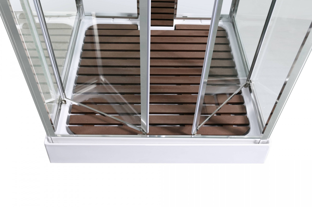 Стильная душевая кабина AvaCan сочетает в себе высокую функциональность, практичность и надежность. При изготовлении применяется безопасное закаленное стекло, надежно фиксируемое алюминиевым профилем. Профиль сделан из алюминия повышенной прочности. Сборка без силикона (увеличивает срок службы, защищает от протечек), внутренняя сборка (облегчает установку и ревизию; позволяет установить в ограниченном пространстве и обойтись без демонтажа других сантехнических приборов), смеситель резьбовой (без хомутов).Двойные металлические ролики дверей (распределение нагрузки на два ролика, увеличивают срок службы). Душевая штанга(позволяет регулировать по высоте ручную лейку), ручная арома-лейка с витамином С (картридж в комплекте,есть возможность замены или удаления картриджа), полочки(из стекла, с ограничителем), сифон с гидрозатвором.