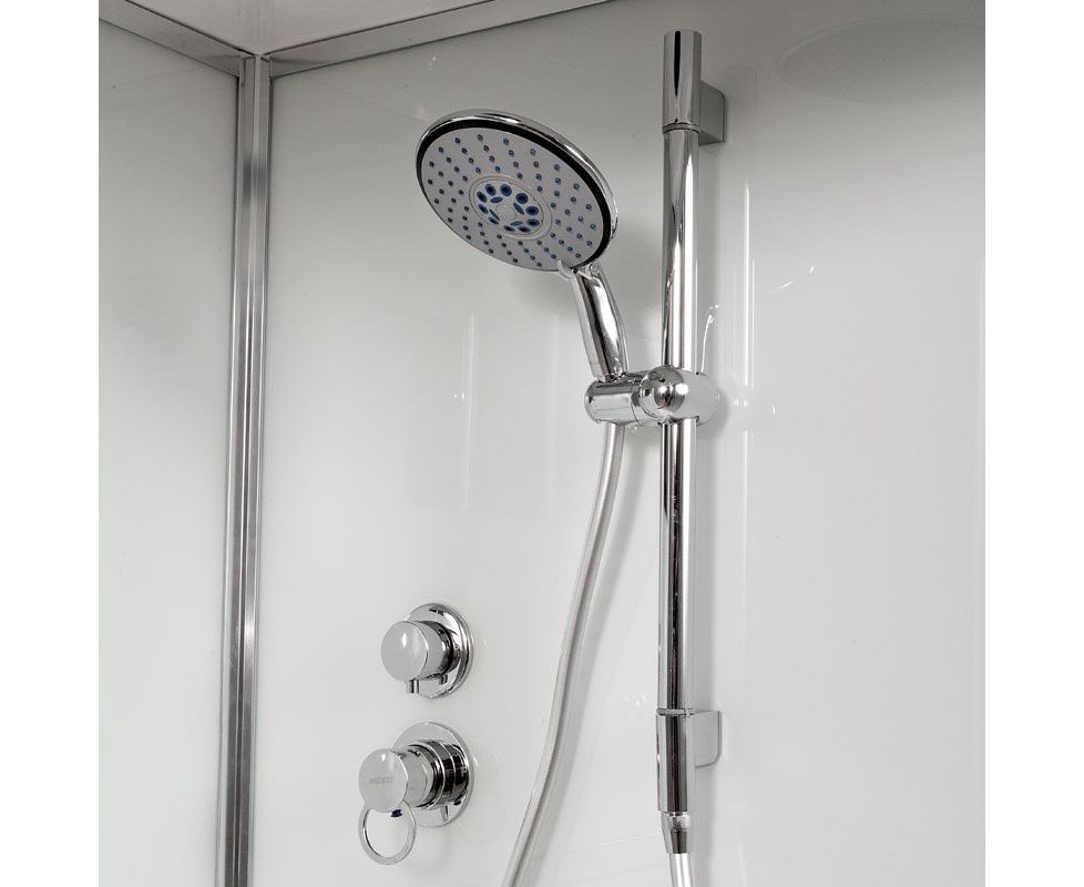 Новинка !!! Душевая кабина Deto D 271 со средним поддоном в размере 100см х 100см x 208см. • Монтаж душевой кабины осуществляется без использования силикона • Латунный смеситель с керамическими картриджами и резьбовыми соединениями • 100% акриловый поддон с дренажными отводами, высотой 27 см со съемным экраном усиленный металлическим каркасом с антискользящим покрытием • Матовое безопасное закаленное сверхпрочное стекло толщиной 4 мм с антикальциевой обработкой • Душевая штанга с регулировкой лейки по высоте и ручная лейка с силиконовыми форсунками диаметром 140 мм с функцией переключения режимов • Шланг 1,5 метра Anti-Twist (не скручивается). Поворот шланга 360* • Ручной душ оснащен системой Easy Clean • Бесшумные двойные ролики из нержавеющей стали • Донный клапан с системой клик-клак с гидрозатвором • Зеркало и стеклянная полка с ограничителем • Крепление (крючок) • Хромированные ручки