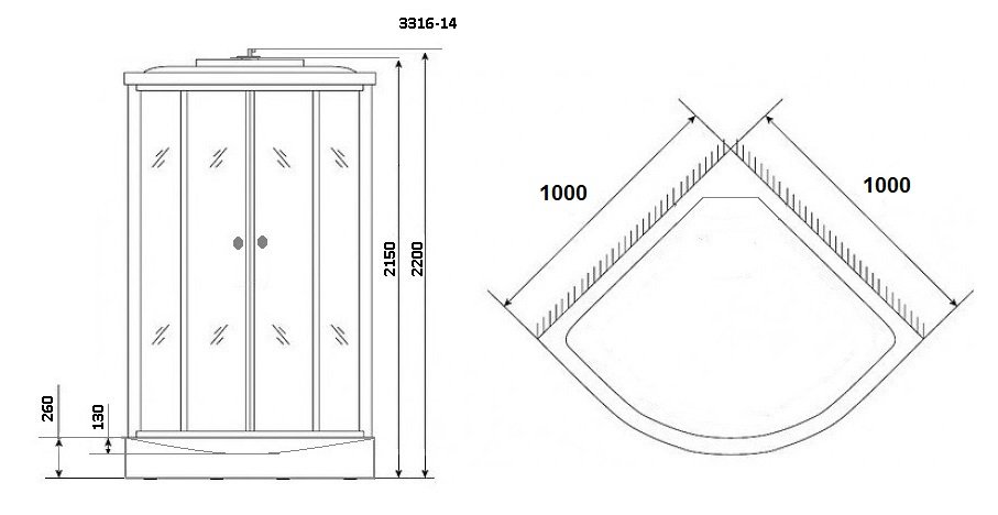 Душевая кабина Niagara NG-3316-14 (1000х1000х2150) низкий поддон(26см) стекло МАТОВОЕ 4 места