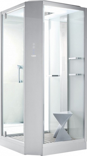 Комплектация: Турецкая баня, верхний душ, гидромассаж, полочки, хромированный полотенцедержатель, FM радио, вентиляция, сиденье, озонация, ручной душ с подмесом воздуха, поддон из тика, отдельностоящее акриловое сиденье