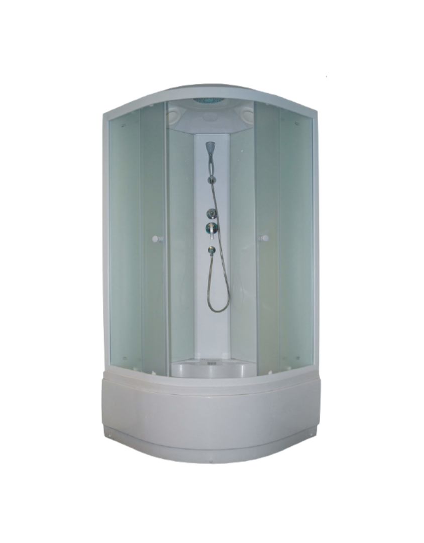 Душевая кабина Parly EB102 Размер: 100х100х215 см Душевая кабина с высоким поддоном практична в использовании – в ней удобно купать детей и животных, замачивать вещи и постельное белье. За счет закругленной формы кабина занимает минимум места в санузле. При этом внутри душевой зоны достаточно места, чтобы принять водные процедуры с комфортом. Достоинства: Матовое стекло, 4 мм. Безопасное закаленное полотно устойчиво к случайным ударам. Стенки – закаленное стекло белое 4 мм. Профиль: белый алюминиевый. Не боится высокой влажности и перепадов температуры, устойчив к образованию коррозии. Поддон: высокий 42 см, полукруглый, рельефное дно, литое сиденье. Комплектация: верхний душ ТРОПИК, ручной душ, сифон. Магнитные уплотнители под 45° не позволяют теплу выходить из душевой кабины, защищают помещение от просачивания воды. Раздвижные двери не соскакивают с направляющих, образуют комфортную ширину входа. Соединение без болтовое. Дополнительные силиконовые уплотнители для задних стенок.