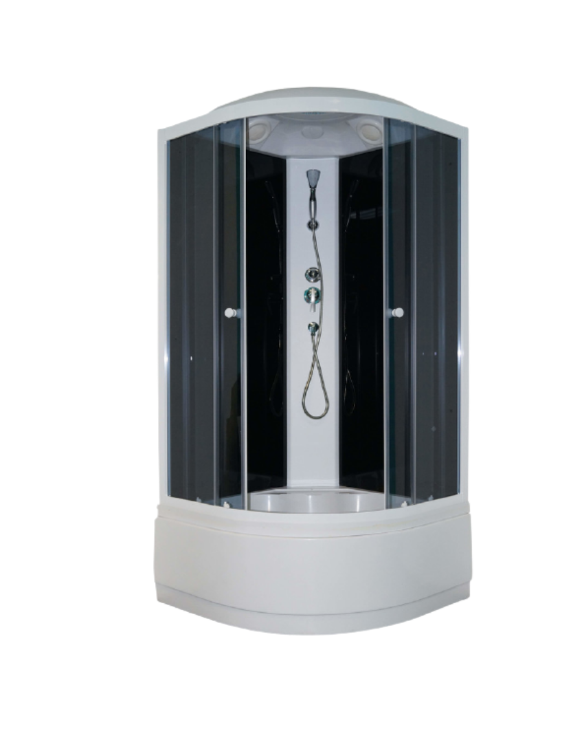 Душевая кабина Parly EC102 Размер: 100х100х215 см Душевая кабина с высоким поддоном практична в использовании – в ней удобно купать детей и животных, замачивать вещи и постельное белье. За счет закругленной формы кабина занимает минимум места в санузле. Достоинства: Тонированное стекло, 4 мм. Безопасное закаленное полотно устойчиво к случайным ударам. Стенки – закаленное черное стекло 4 мм. Профиль: белый алюминиевый. Не боится высокой влажности и перепадов температуры, устойчив к образованию коррозии. Поддон: высокий 42 см, полукруглый, рельефное дно, литое сиденье. Комплектация: верхний душ ТРОПИК, ручной душ, сифон Магнитные уплотнители под 45° не позволяют теплу выходить из душевой кабины, защищают помещение от просачивания воды. Раздвижные двери не соскакивают с направляющих, образуют комфортную ширину входа. Соединение без болтовое. Дополнительные силиконовые уплотнители для задних стенок.