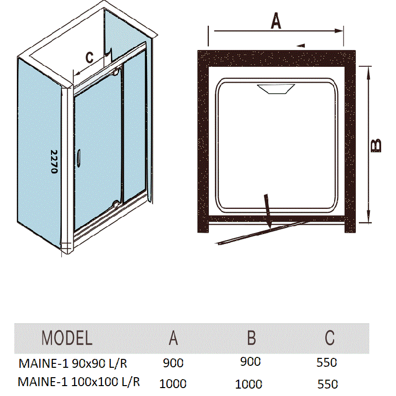 Размеры 1000х1000х2270