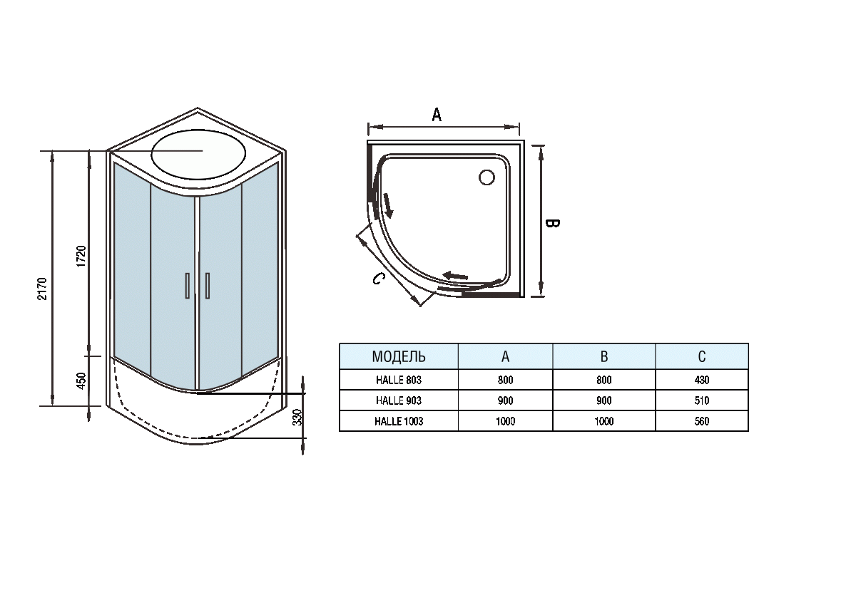 Душевые кабины WeltWasser HALLE 1003 1000х1000х2170 мм
