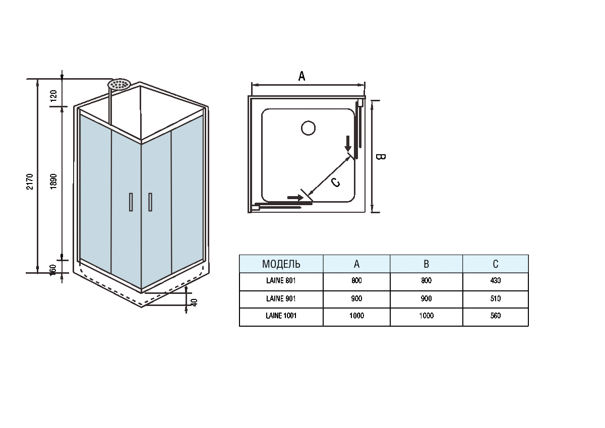 Размеры 1000х1000х2170 мм
