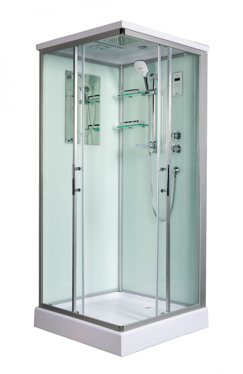 WeltWasser LAINE 1003 – качественная душевая кабина с богатым функционалом, привлекающая простотой в эксплуатации. Конструкция оснащена универсальной дверью, которая после установки раздвигается влево и вправо. Передние и боковые стенки кабины выполнены из надёжного и прочного закаленного стекла толщиной 5 миллиметров. Ему не страшны перепады температур, случайные удары. Задняя стенка изготавливается из идентичного стекла, но окрашивается в белую цветовую гамму. В зависимости от собственных предпочтений, человек может пользоваться ручным душем, выбирая наиболее оптимальное для себя положение, либо верхним. Верхний LED свет создает приятное освещение внутри кабины. Сенсорный пульт оснащен функцией bluetooth и вы можете наслаждаться любимой музыкой с телефона. Смеситель Термостат поможет выбрать и зафиксировать оптимальную температуру для принятия душа. Монтаж кабины осуществляется без силикона. Внутри конструкции свободно помещается высокий человек, ведь её внутренняя высота составляет два метра.