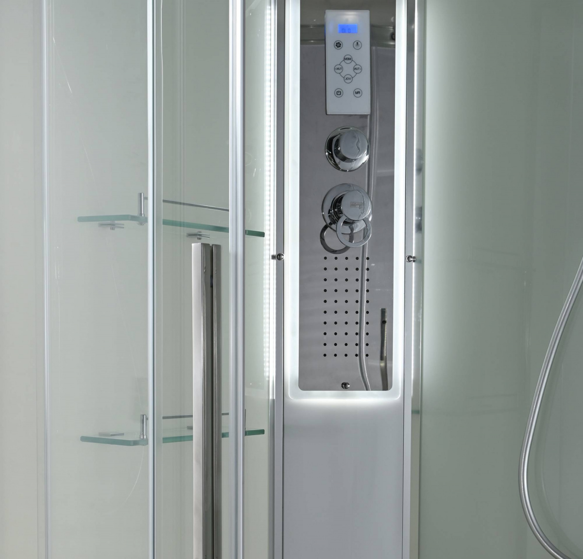 Стильная душевая кабина AvaCan EM2812LLEDT сочетает в себе высокую функциональность, практичность и надежность. При изготовлении применяется безопасное закаленное стекло толщиной 5 мм (прозрачное), надежно фиксируемое алюминиевым профилем. Сборка без силикона (увеличивает срок службы), внутренняя сборка(облегчает установку и ревизию; позволяет установить в ограниченном пространстве), смеситель резьбовой (без хомутов). Съемный экран поддона (позволяет осуществлять ревизию сифона). Цвет профиля  хром. Двойные металлические ролики дверей (увеличивают срок службы).В комплекте : душевая штанга, две полочки , тропический (верхний) душ, арома-лейка с витамином С (картридж съемный),полимерная вставка в поддон(имитация дерева),сифон, ручки дверей из нержавейки , двойные ролики ,пульт сенсорный(Блютуз ,LED подсветка ,радио ,вытяжка),гидромассаж спины.