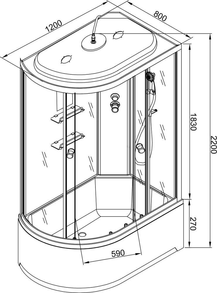 Стильная душевая кабина AvaCan EM 2712 R сочетает в себе высокую функциональность, практичность и надежность. Для изготовления применяют безопасное закаленное стекло толщиной 5 мм, надежно фиксируемое алюминиевым профилем. Цвет профиля хром. В комплекте зеркало, переключатель режимов, смеситель, тропический (верхний) душ, полочки.