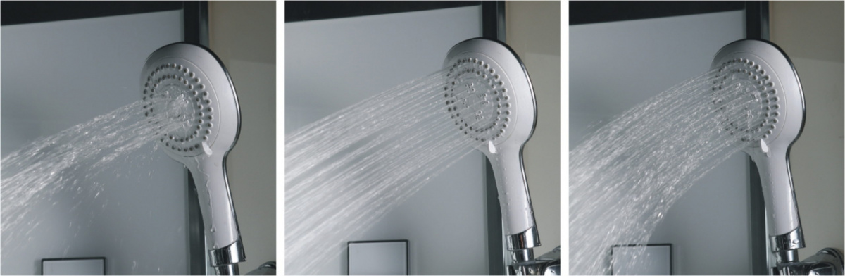Форсунки гидромассажа, лейки мобильного и тропического душа в едином концептуальном стиле;