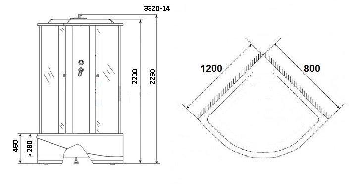 Душевая кабина Niagara NG-3320-14L (1200х800х2150) высокий поддон(40см) стекло МАТОВОЕ 4 места