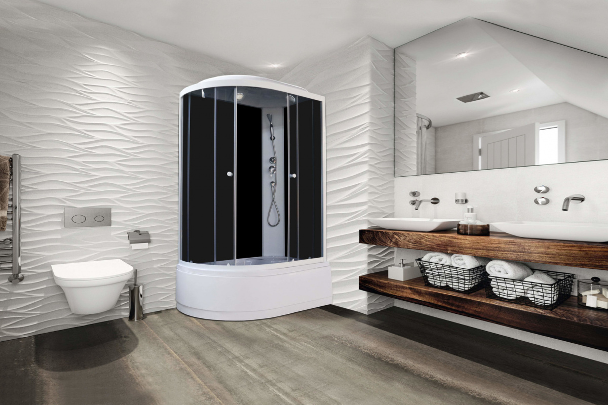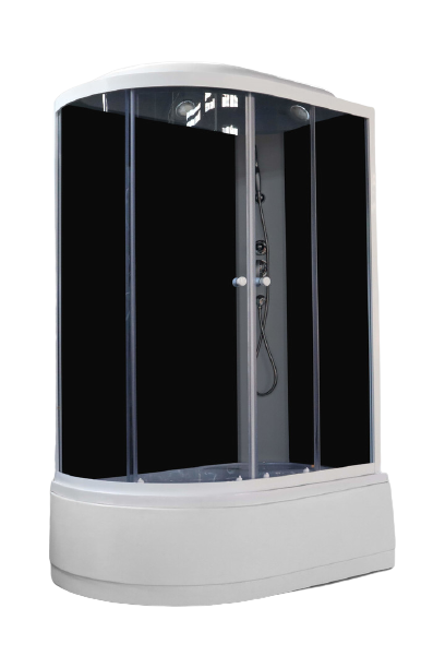 Правосторонняя кабина с высоким поддоном. Сочетание черного стекла и белого профиля подчеркивают стильный дизайн модели. Душевая кабина станет отличным дополнением в современном оформлении ванной комнаты. Достоинства: Тонированное закаленное стекло, 4 мм. Полотно безопасно: в случае битья стекло рассыпается на множество граней с тупыми концами, о которые невозможно пораниться. Стенки – закаленное черное стекло, 4 мм. Профиль: белый алюминиевый. Устойчив к образованию коррозии, не деформируется при перепадах температуры и влажности. Поддон: асимметричный, высокий 42 см. В высоком поддоне удобно купить детей и животных, замачивать вещи. Литое сиденье можно использовать как дополнительное место для хранения душевых принадлежностей. Комплектация: верхний душ ТРОПИК, ручной душ, сифон. Раздвижные двери смыкаются плотно, «ходят» плавно. Магнитные уплотнители под 45° помогают сохранить тепло внутри кабины, не дают воде просачиваться наружу. Соединение без болтовое. Дополнительные силиконовые уплотнители для задних стенок.
