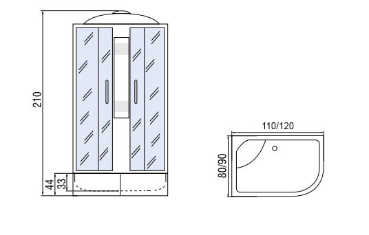 МОНОМАХ 120/80/44 С МЗ R Душевая кабина, 1200*800*440, асимметричная