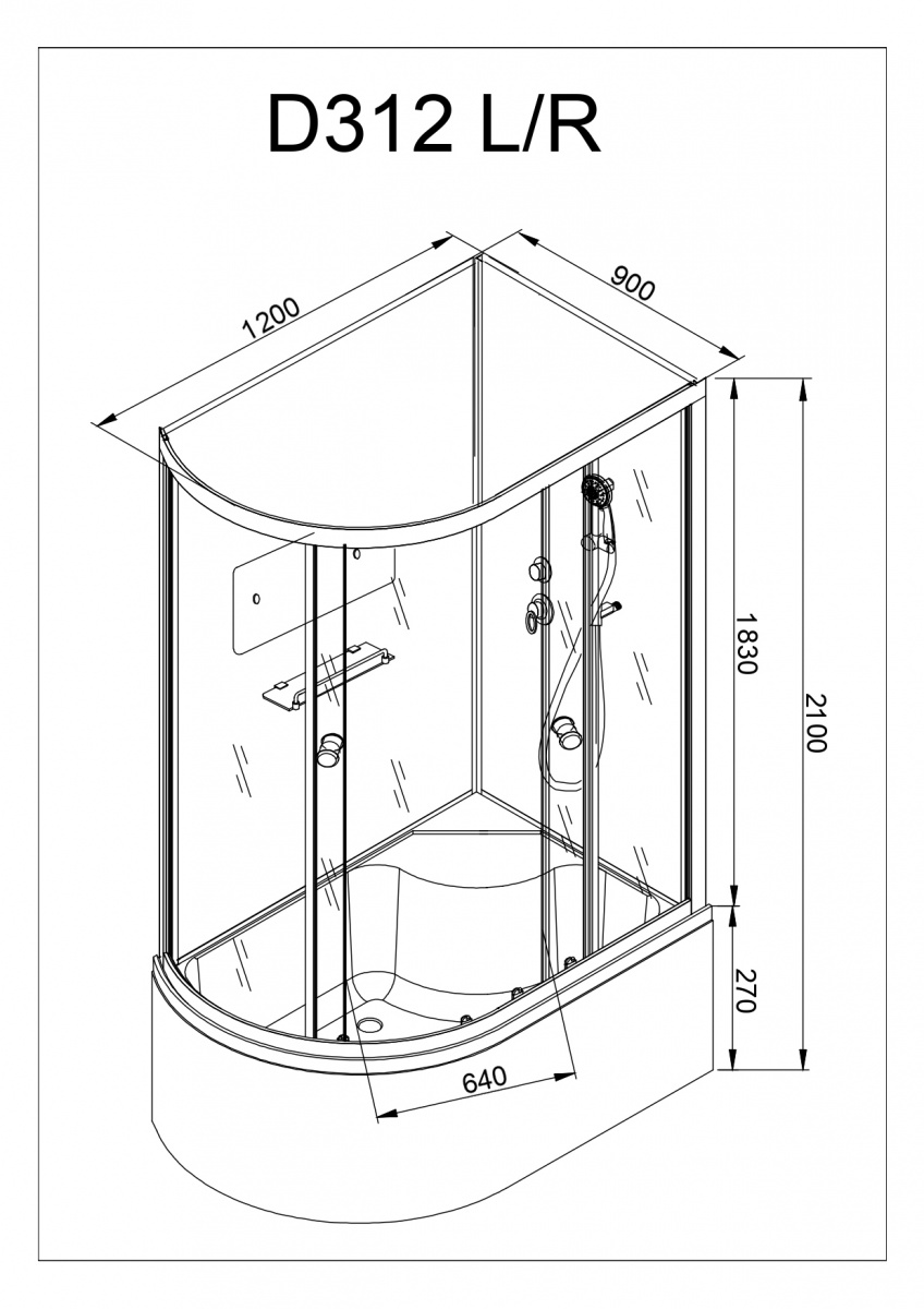 Стильная душевая кабина свнутренней сборкой AvaCan D312 R сочетает в себе высокую функциональность, практичность и надежность. Для изготовления применяют безопасное закаленное стекло толщиной 4 мм, надежно фиксируемое алюминиевым профилем. Цвет профиля хром. В комплекте сифон, полочка, зеркало, смеситель, переключатель режимов, передний съемный экран, душевой гарнитур.