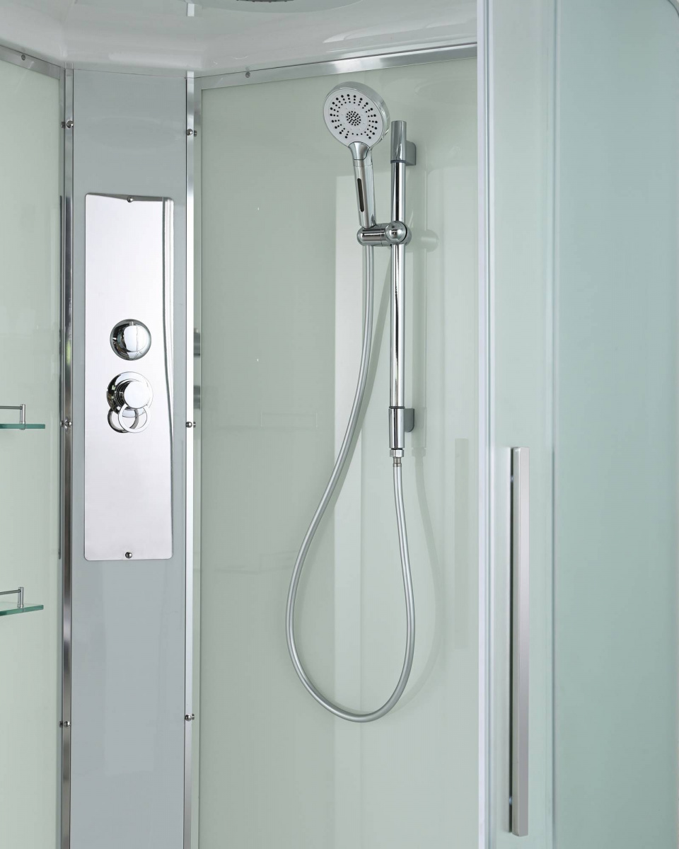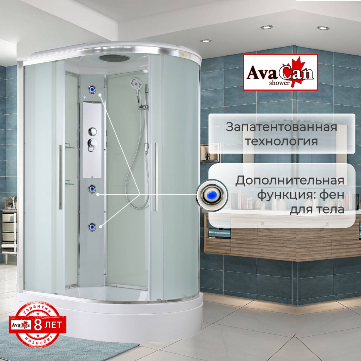 Стильная душевая кабина AvaCan сочетает в себе высокую функциональность, практичность и надежность. При изготовлении применяется безопасное закаленное стекло, надежно фиксируемое алюминиевым профилем. Профиль сделан из алюминия повышенной прочности. Сборка без силикона (увеличивает срок службы, защищает от протечек), внутренняя сборка (облегчает установку и ревизию; позволяет установить в ограниченном пространстве и обойтись без демонтажа других сантехнических приборов), смеситель резьбовой (без хомутов). Съемный экран поддона (позволяет осуществлять подключение и ревизию сифона).Двойные металлические ролики дверей (распределение нагрузки на два ролика, увеличивают срок службы). Душевая штанга(позволяет регулировать по высоте ручную лейку), ручная арома-лейка с витамином С (картридж в комплекте,есть возможность замены или удаления картриджа), полочки(из стекла, с ограничителем), сифон с гидрозатвором.