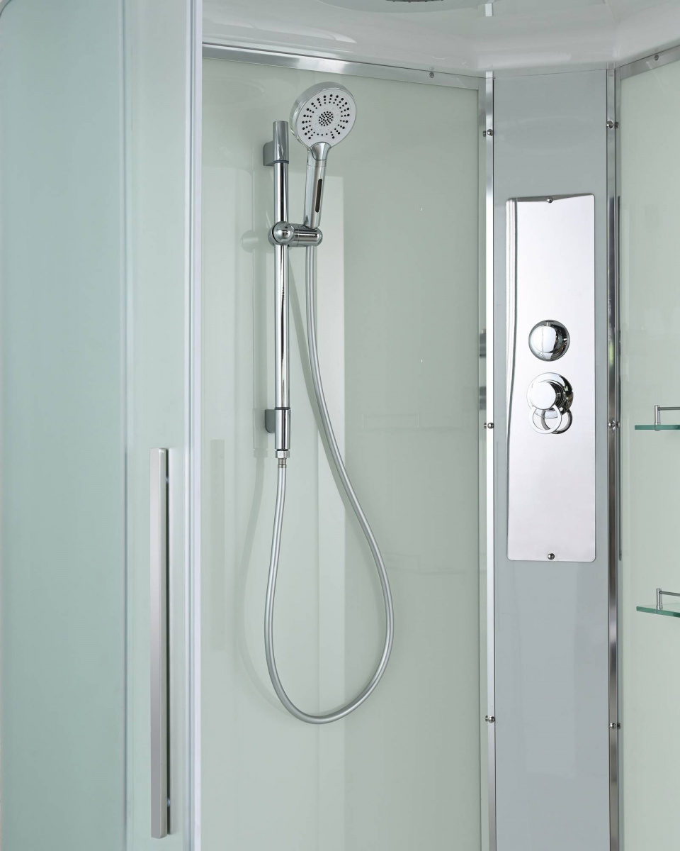 Стильная душевая кабина AvaCan сочетает в себе высокую функциональность, практичность и надежность. При изготовлении применяется безопасное закаленное стекло, надежно фиксируемое алюминиевым профилем. Профиль сделан из алюминия повышенной прочности. Сборка без силикона (увеличивает срок службы, защищает от протечек), внутренняя сборка (облегчает установку и ревизию; позволяет установить в ограниченном пространстве и обойтись без демонтажа других сантехнических приборов), смеситель резьбовой (без хомутов). Съемный экран поддона (позволяет осуществлять подключение и ревизию сифона).Двойные металлические ролики дверей (распределение нагрузки на два ролика, увеличивают срок службы). Душевая штанга(позволяет регулировать по высоте ручную лейку), ручная арома-лейка с витамином С (картридж в комплекте,есть возможность замены или удаления картриджа), полочки(из стекла, с ограничителем), сифон с гидрозатвором.