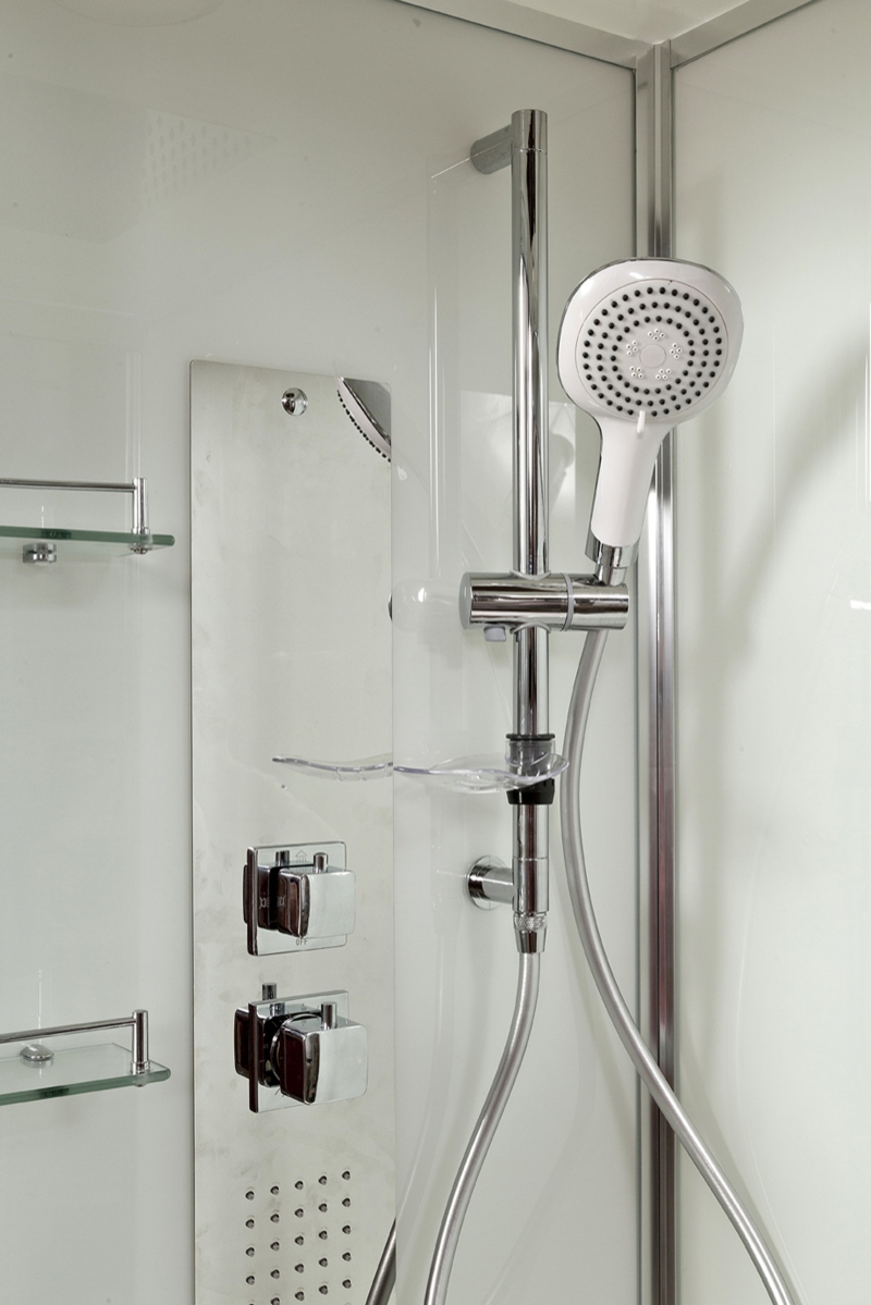 Стильная душевая кабина с внутренней сборкой AvaCan Z120 Kerava сочетает в себе высокую функциональность, практичность и надежность. Для изготовления применяют безопасное закаленное стекло толщиной 6 мм, надежно фиксируемое алюминиевым профилем. Цвет профиля хром. В комплекте душевой гарнитур, тропический (верхний) душ, деревянная вставка в поддон.