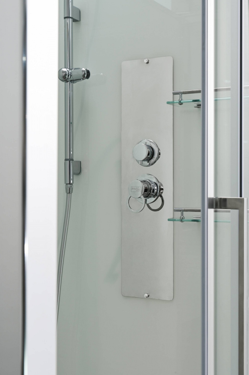 Стильная душевая кабина AvaCan сочетает в себе высокую функциональность, практичность и надежность. При изготовлении применяется безопасное закаленное стекло, надежно фиксируемое алюминиевым профилем. Профиль сделан из алюминия повышенной прочности. Сборка без силикона (увеличивает срок службы, защищает от протечек), внутренняя сборка (облегчает установку и ревизию; позволяет установить в ограниченном пространстве и обойтись без демонтажа других сантехнических приборов), смеситель резьбовой (без хомутов).Двойные металлические ролики дверей (распределение нагрузки на два ролика, увеличивают срок службы). Душевая штанга(позволяет регулировать по высоте ручную лейку), ручная арома-лейка с витамином С (картридж в комплекте,есть возможность замены или удаления картриджа), полочки(из стекла, с ограничителем), сифон с гидрозатвором.