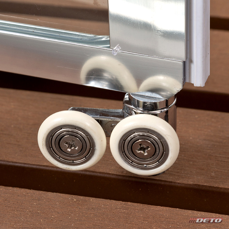 бесшумные двойные ролики (верхние и нижние) из нержавеющей стали в пластиковом антикоррозийном кожухе;