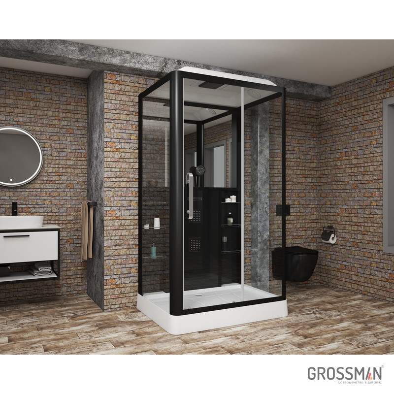 •Душевая кабина Grossman GR-227 - в чёрном цвете, с прозрачным стеклом.