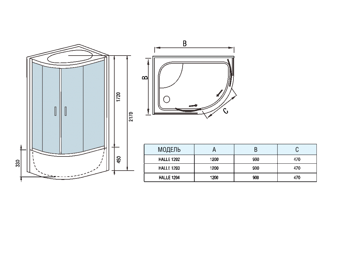 Душевые кабины WeltWasser HALLE 1203 L/R 1200х900х2170 мм