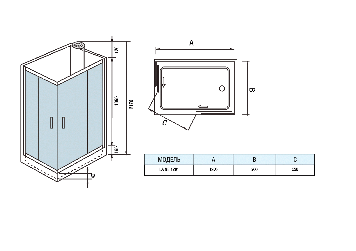Душевые кабины WeltWasser  LAINE 1201 1200х900х2170 мм