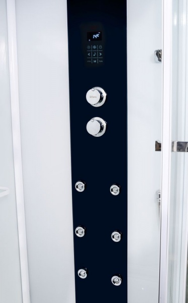 Верхний и ручной душ с LED подсветкой, латунный смеситель, 6 форсунок гидромассажа, вентиляция, FM радио, сифон Поддон 150mm.