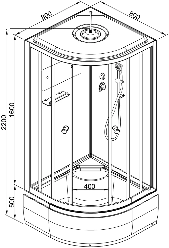 Стильная душевая кабина AvaCan D80S LED сочетает в себе высокую функциональность, практичность и надежность. Для изготовления применяют безопасное закаленное стекло толщиной 4 мм, надежно фиксируемое алюминиевым профилем. Цвет профиля хром. В комплекте встроенное сидение, сифон, полочка, зеркало, сенсорный пульт управления, смеситель, переключатель режимов, передний съемный экран, донный клапан (клик-клак), душевой гарнитур, тропический (верхний) душ, вентиляция, радио.