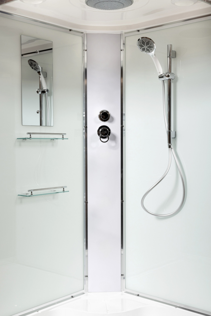 Стильная душевая кабина с внутренней сборкой AvaCan EM 4580 сочетает в себе высокую функциональность, практичность и надежность. Для изготовления применяют безопасное закаленное стекло толщиной 5 мм, надежно фиксируемое алюминиевым профилем. Цвет профиля хром. В комплекте зеркало, донный клапан (клик-клак), переключатель режимов, смеситель, тропический (верхний) душ, полочки, тропический (верхний) душ.