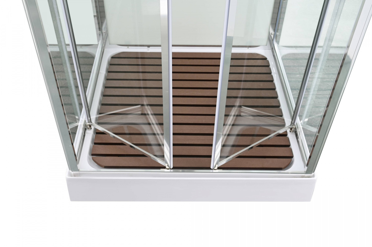 Стильная душевая кабина AvaCan сочетает в себе высокую функциональность, практичность и надежность. При изготовлении применяется безопасное закаленное стекло, надежно фиксируемое алюминиевым профилем. Профиль сделан из алюминия повышенной прочности. Сборка без силикона (увеличивает срок службы, защищает от протечек), внутренняя сборка (облегчает установку и ревизию; позволяет установить в ограниченном пространстве и обойтись без демонтажа других сантехнических приборов), смеситель резьбовой (без хомутов).Двойные металлические ролики дверей (распределение нагрузки на два ролика, увеличивают срок службы). Душевая штанга(позволяет регулировать по высоте ручную лейку), ручная арома-лейка с витамином С (картридж в комплекте,есть возможность замены или удаления картриджа), полочки(из стекла, с ограничителем), сифон с гидрозатвором.