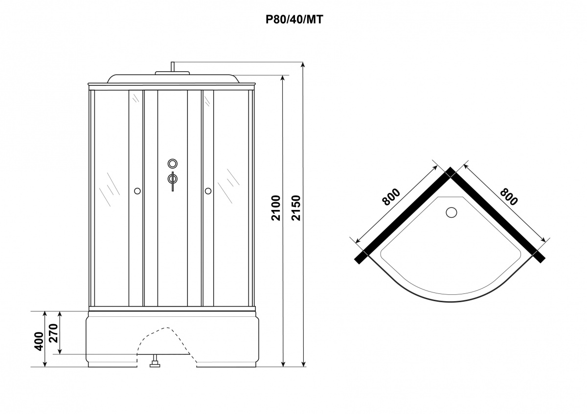 Бессиликоновая душевая кабина Niagara Promo P80/40/MT 80x80