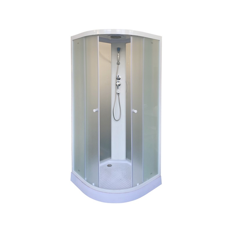 Бюджетная компактная кабина – отличный выбор для маленькой ванной комнаты и дачи. Светлая кабина визуально расширяет пространство, а полукругла форма экономит полезную площадь в санузле.