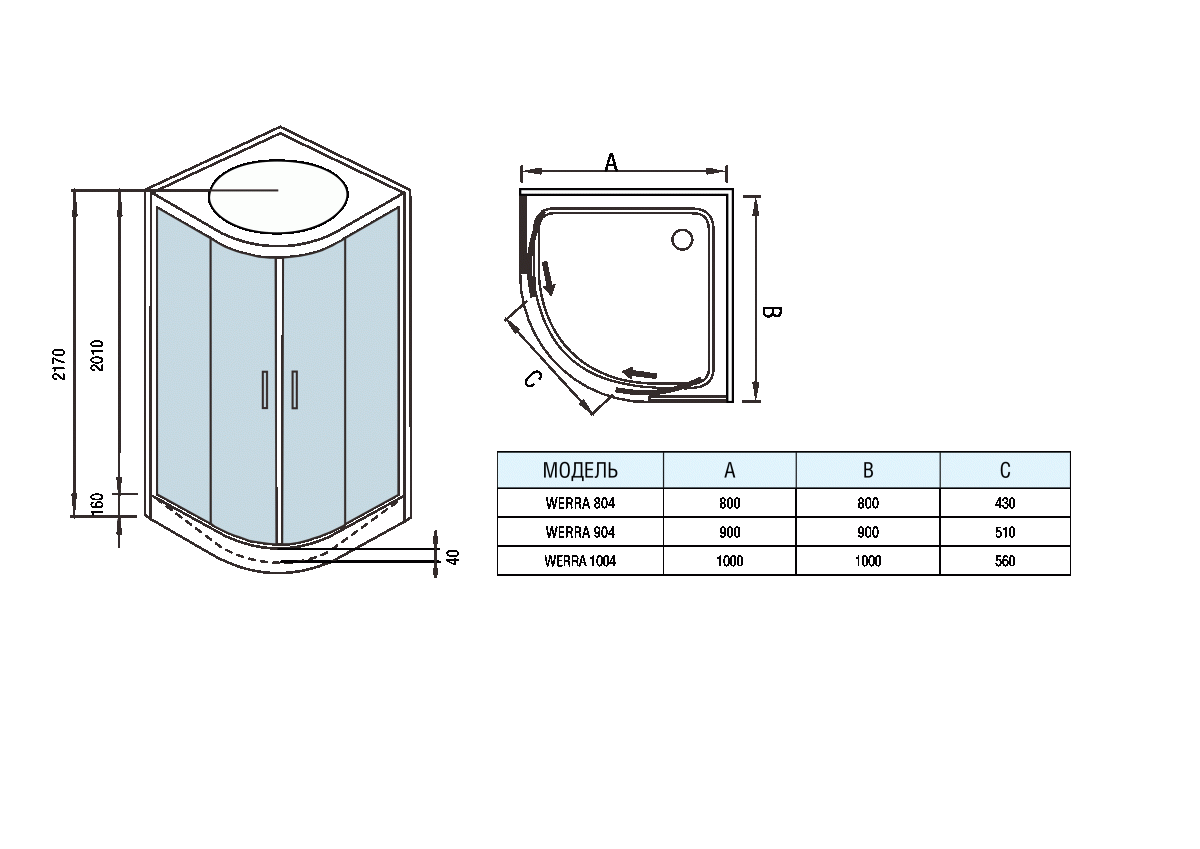 Душевая кабина WeltWasser WERRA 804 800х800х2170 мм