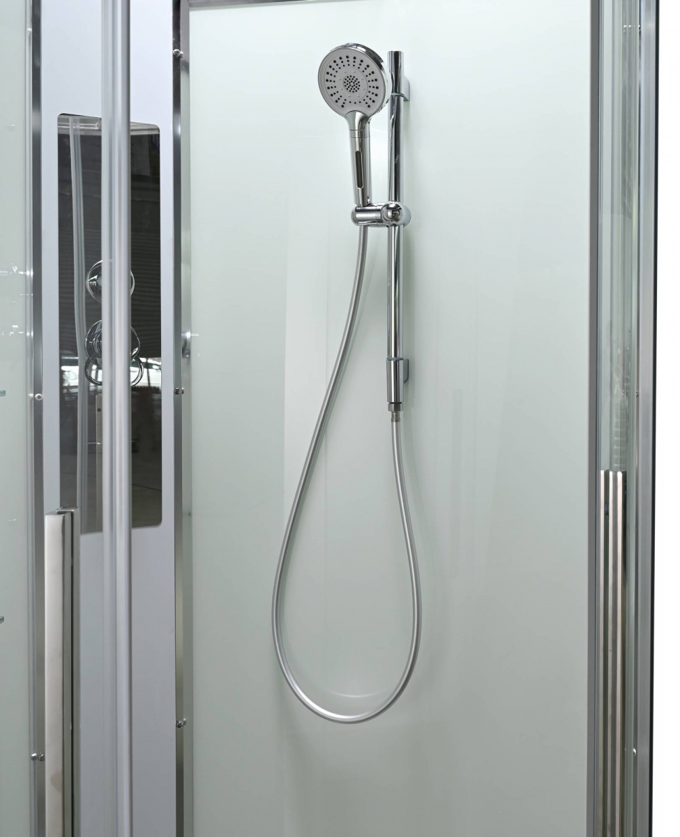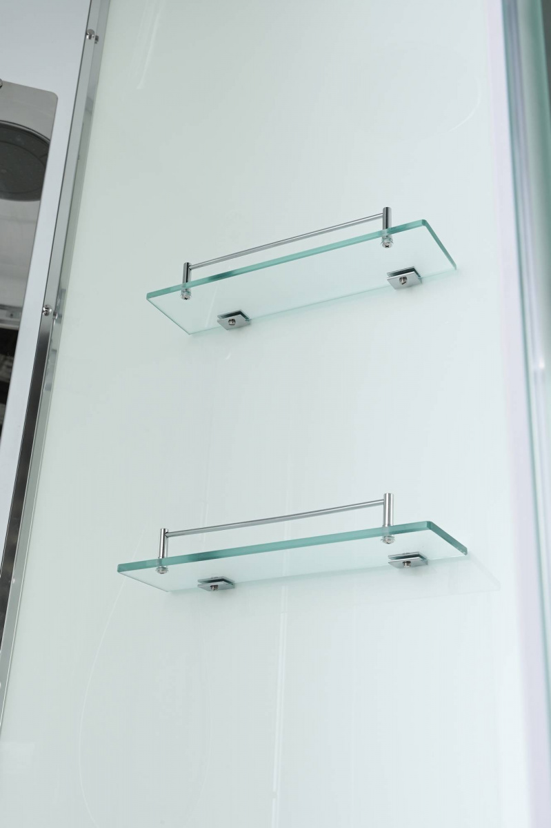Стильная душевая кабина AvaCan EM2090NT сочетает в себе высокую функциональность, практичность и надежность. При изготовлении применяется безопасное закаленное стекло толщиной 5 мм (прозрачное), надежно фиксируемое алюминиевым профилем. Сборка без силикона (увеличивает срок службы), внутренняя сборка(облегчает установку и ревизию; позволяет установить в ограниченном пространстве), смеситель резьбовой (без хомутов). Съемный экран поддона (позволяет осуществлять ревизию сифона). Цвет профиля  хром. Двойные металлические ролики дверей (увеличивают срок службы).В комплекте : душевая штанга, две полочки , арома-лейка с витамином С (картридж съемный),полимерная вставка в поддон(имитация дерева),сифон, ручки дверей из нержавейки , двойные ролики .